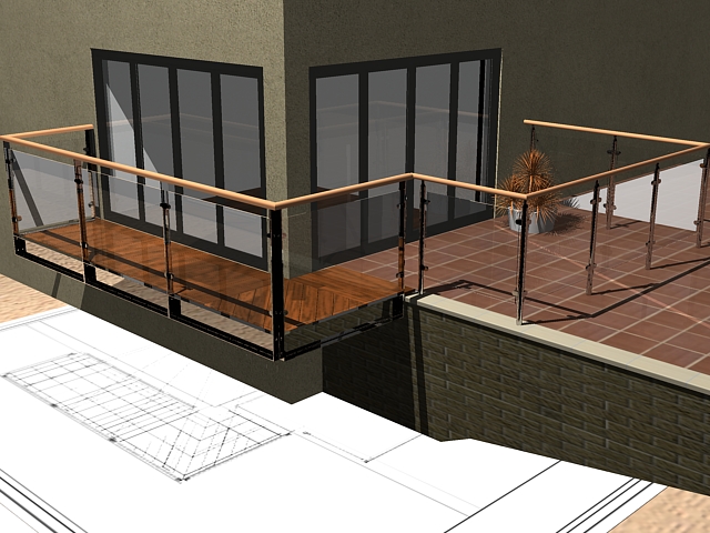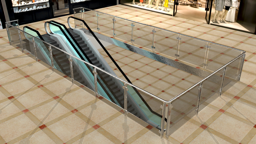 I was approached by a fabrication company to supply a 3D visual of a proposed glass and stainless handrail for a shopping centre in London. On this particular project, I was only supplied a sketch on a piece of paper with some measurements. The contractors only gave them the job if they supplied a visualisation.